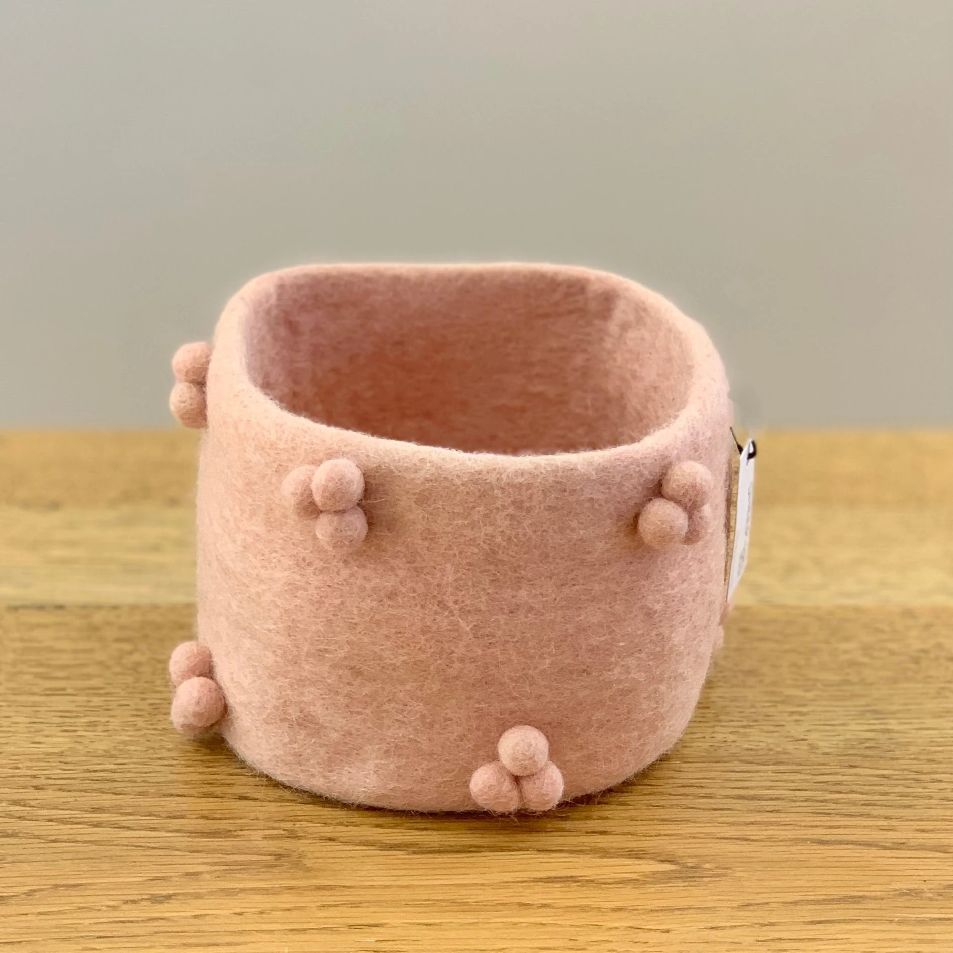 Designed to fit a 12cm pot plant. Ethically handmade in Nepal using 100% NZ Wool, decorated with small clusters of wool felt balls